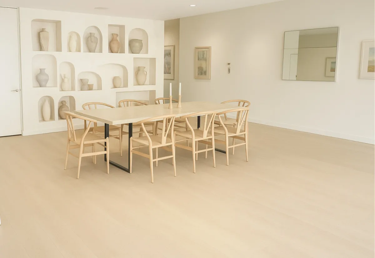 The soft tones and refined grain of European Oak make Luxfeel Artisan a timeless addition to any home. Carefully selected from sustainably managed European forests, each board is rich in natural variation and understated beauty.